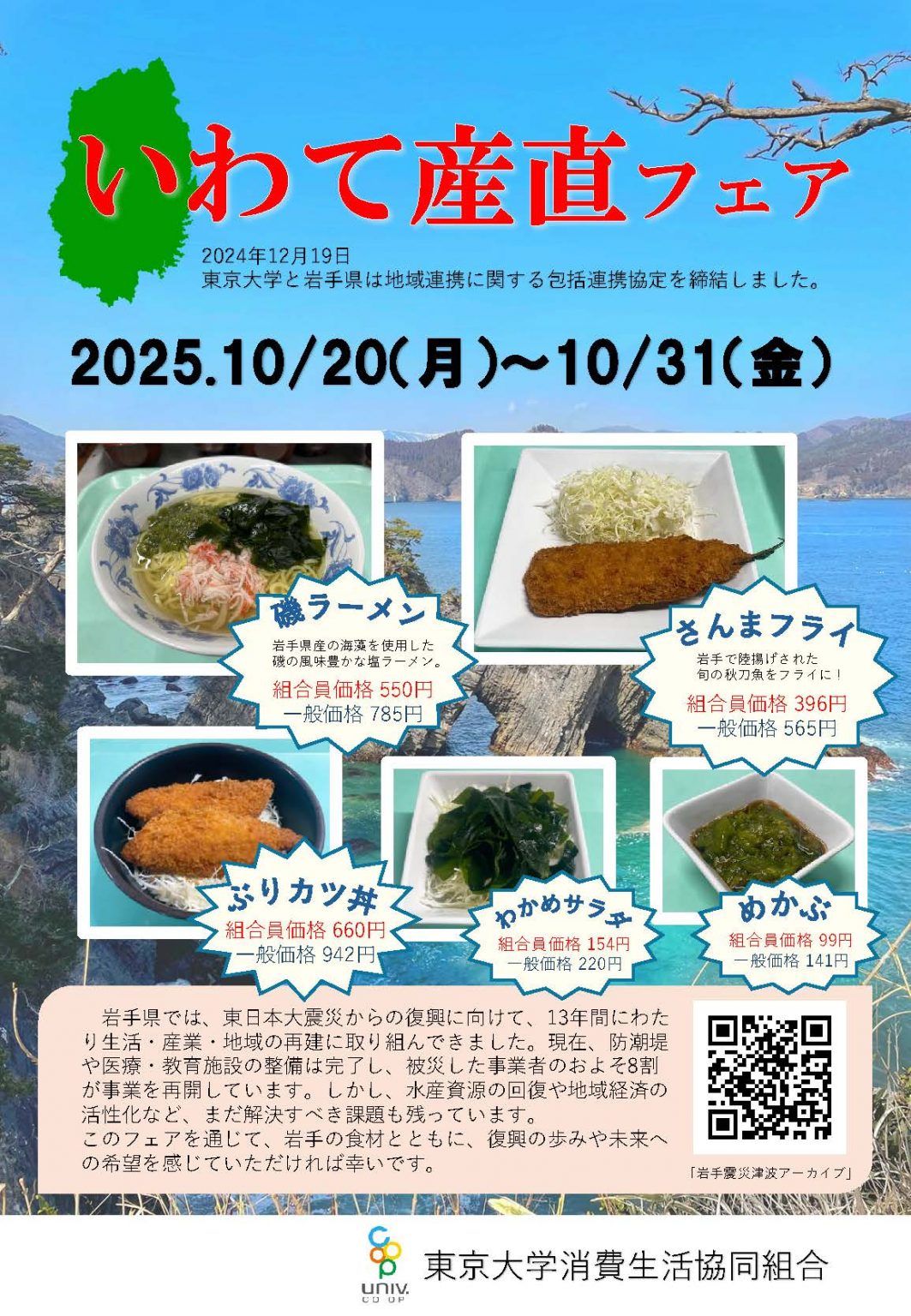 東京大学生協では「いわて産直フェア」を開催いたします。