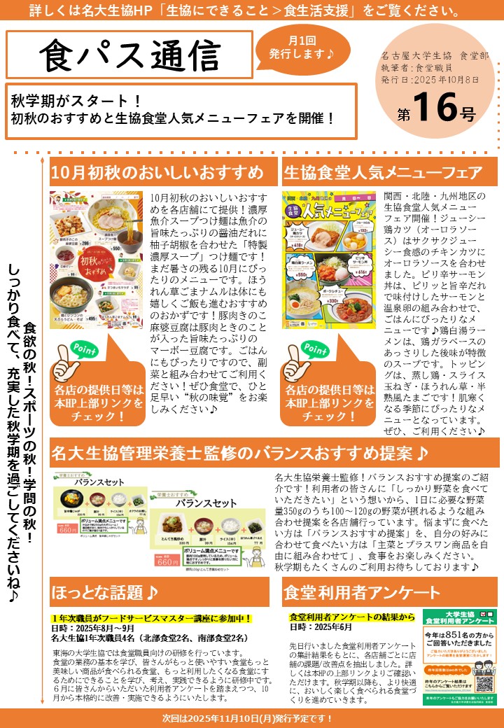 名古屋大学生協では「食パス通信vol.16 発行しました!」のでお知らせいたします。