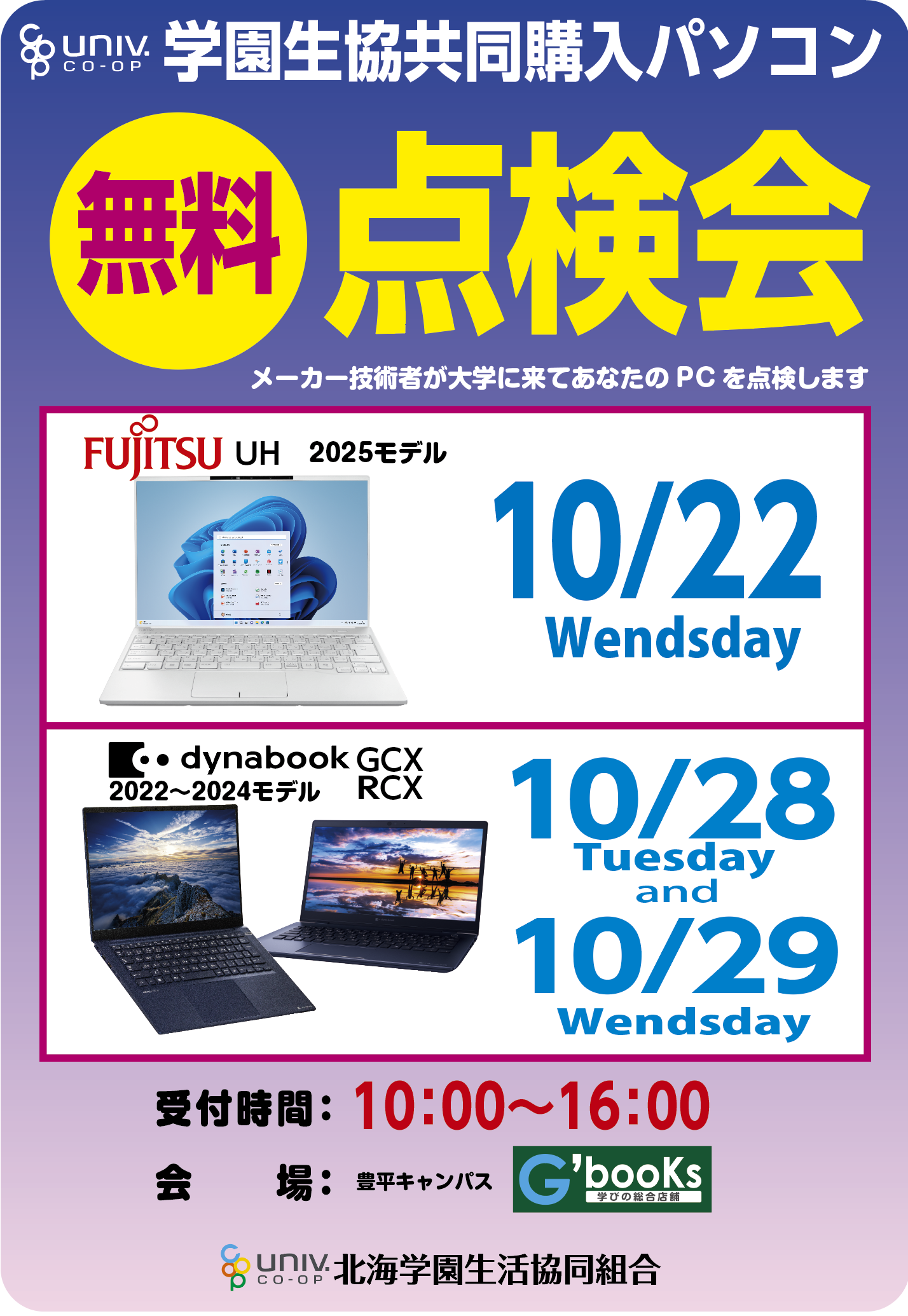 北海学園生協では「北海学園生協協同購入パソコン」無料点検会を実施いたします。