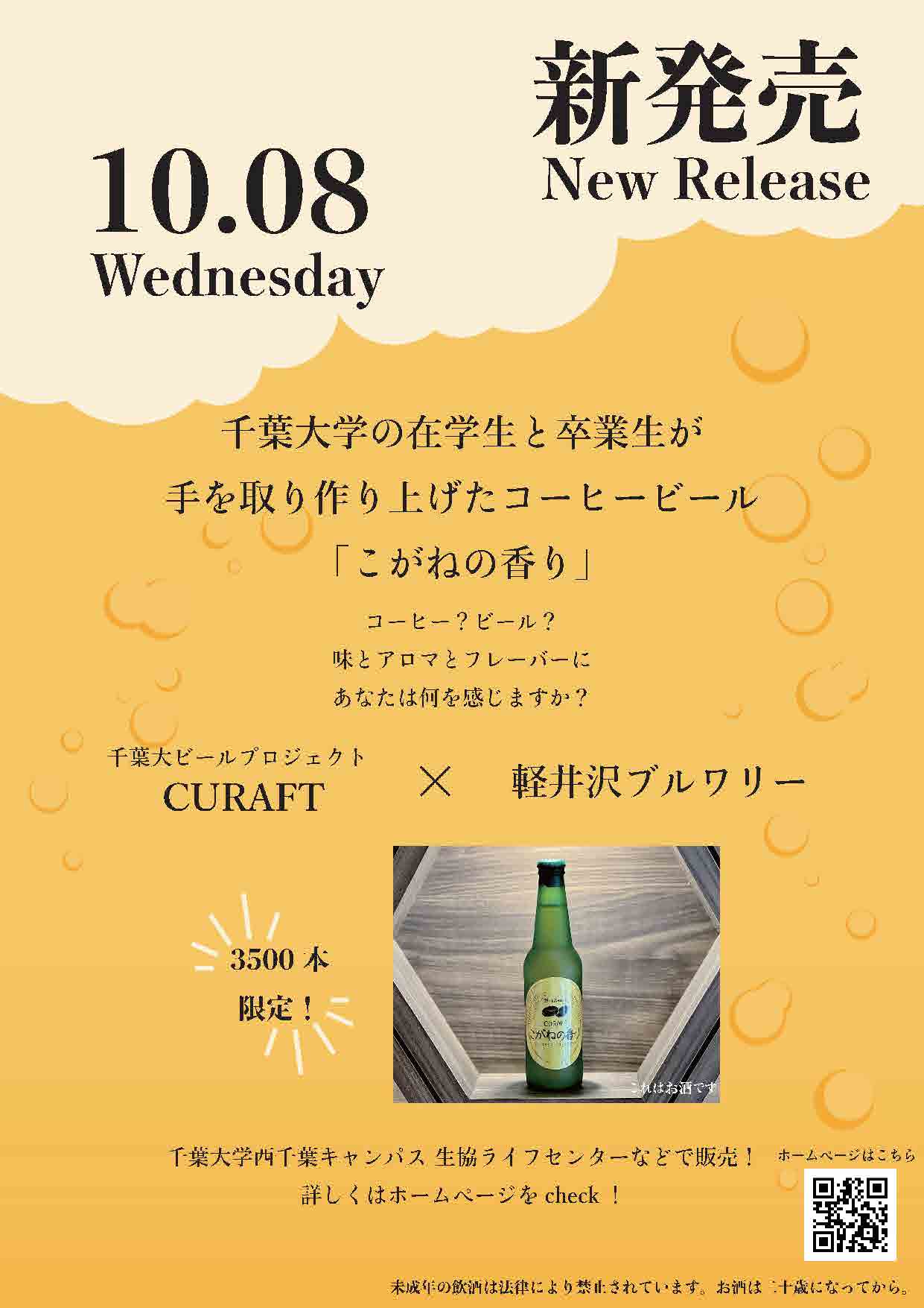 千葉大学生協では、千葉大学ビールプロジェクト(CURAFT)「こがねの香り」10/8(水)より販売を開始します。