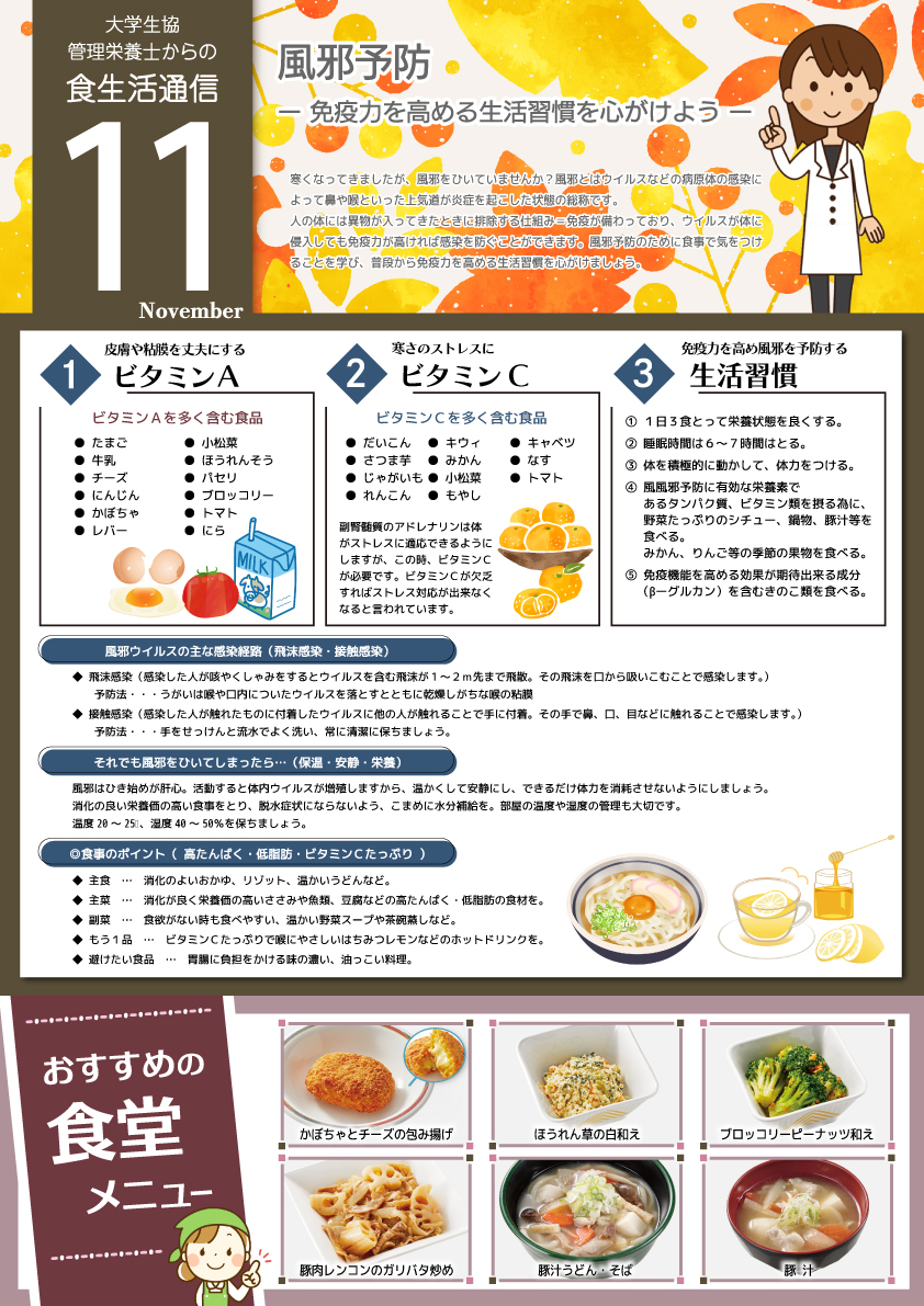 大学生協「学食どっとコープ」大学生協管理栄養士からの食生活通信2025年11月号