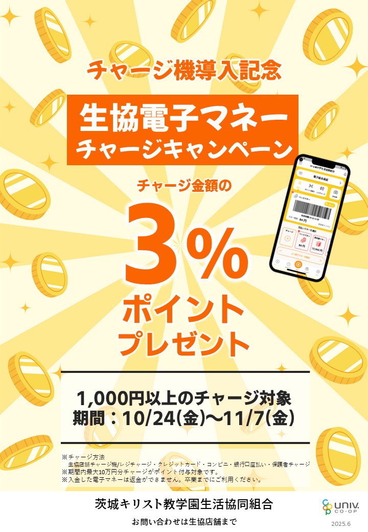 2025年秋 「生協電子マネーチャージキャンペーンを開催中!」です