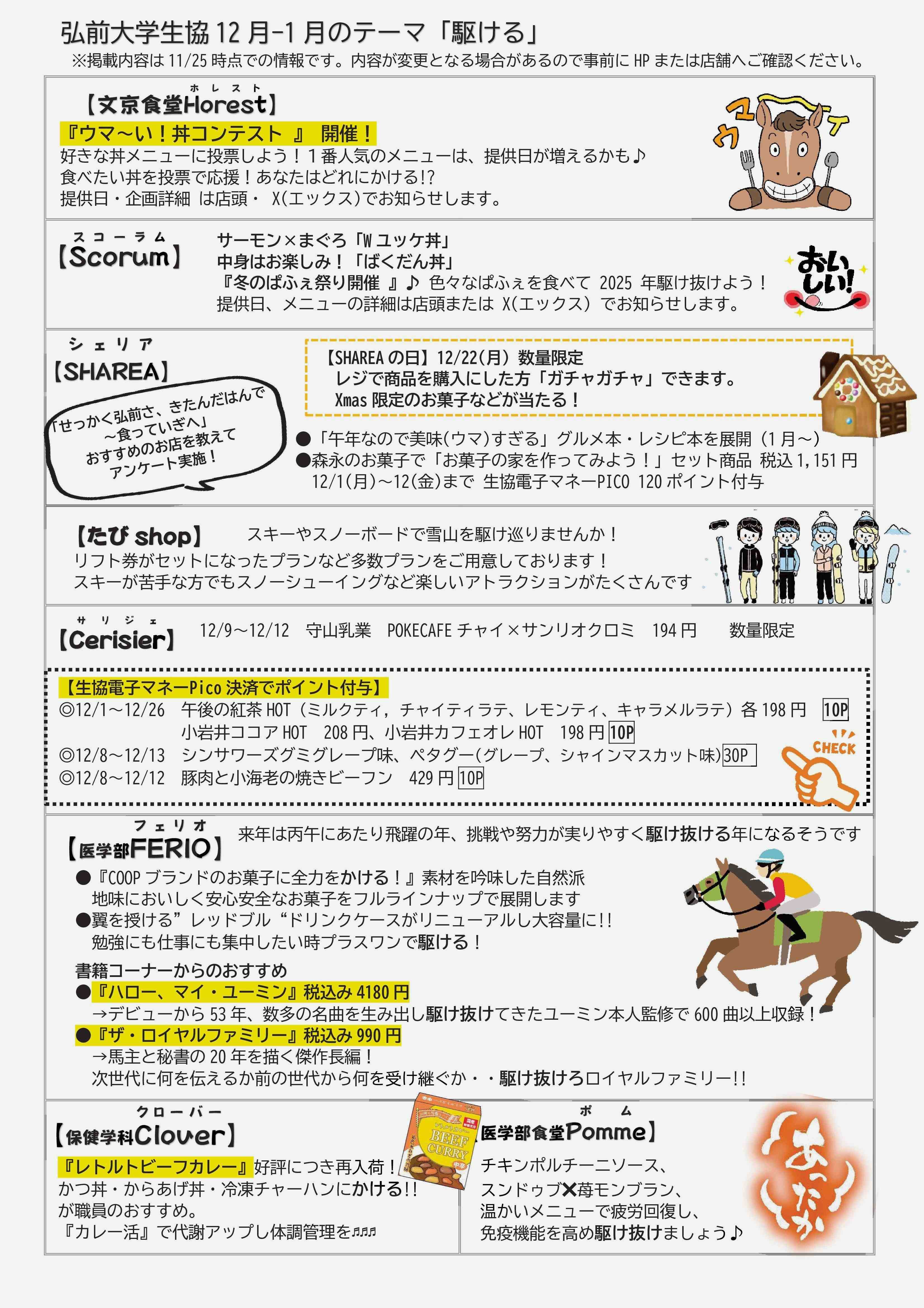 弘前大学生協 12月‐1月のテーマ 「駆ける」でイベントを開催いたします。