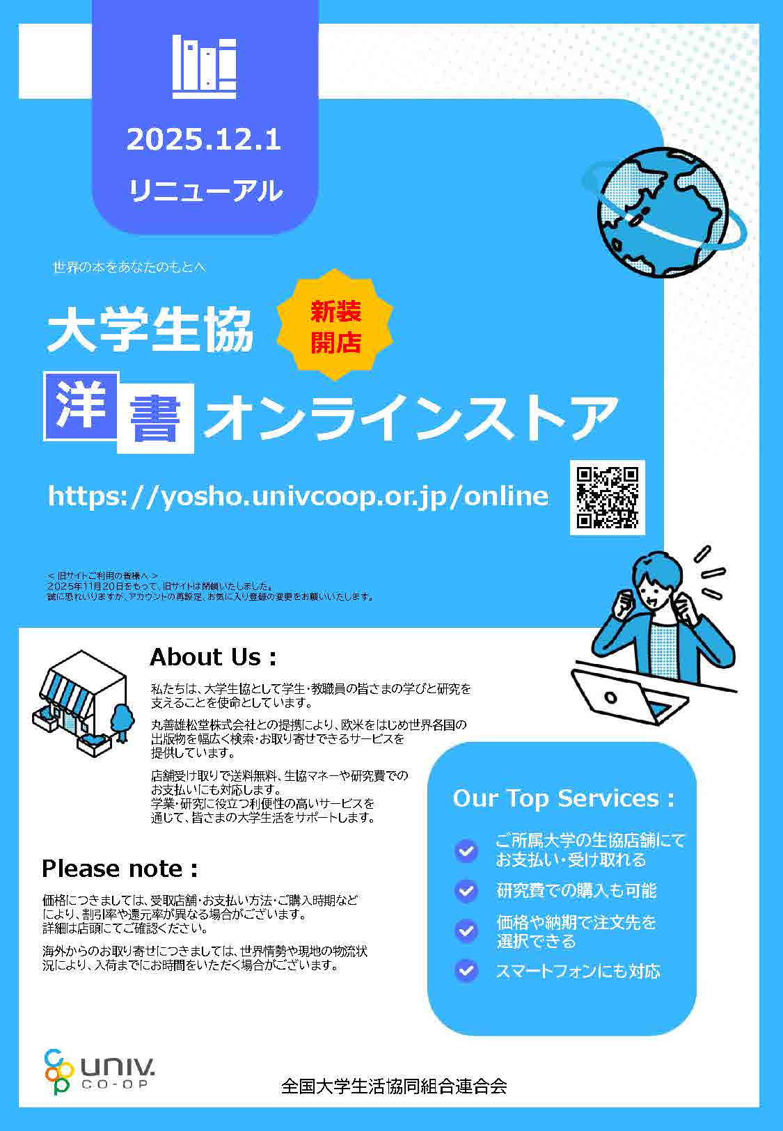 現行(2025年11月末迄)の大学生協洋書オンラインストアをすでにご利用いただいている方へ
