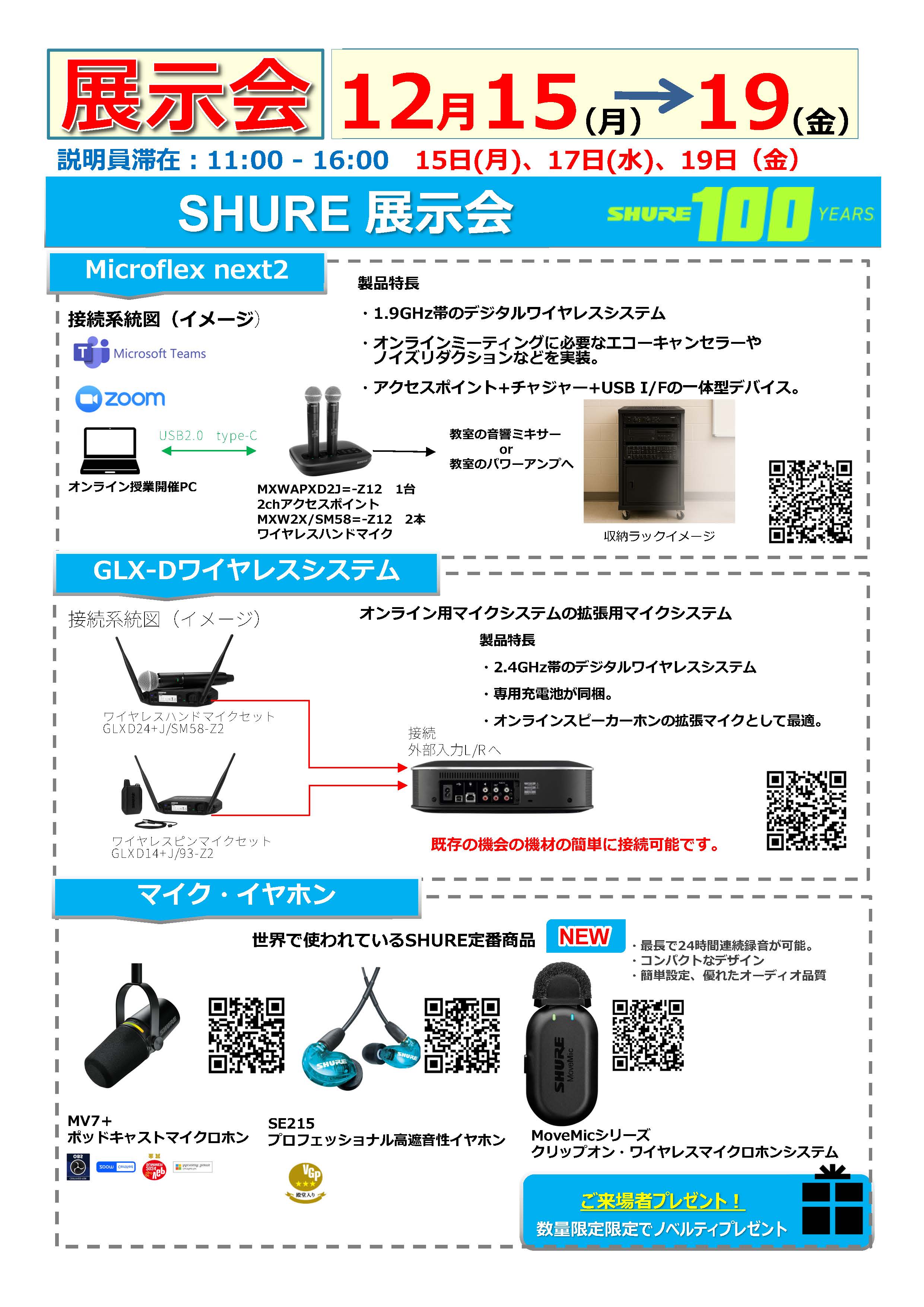 12/15(月)~12/19(金)にてSHURE展示会を開催いたします。