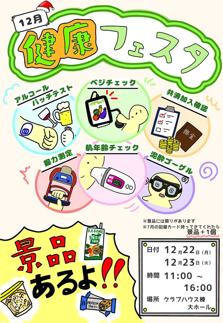 12月22日(月)、23日(火)、クラブハウス棟大ホールにて「健康フェスタ」が開催されます!