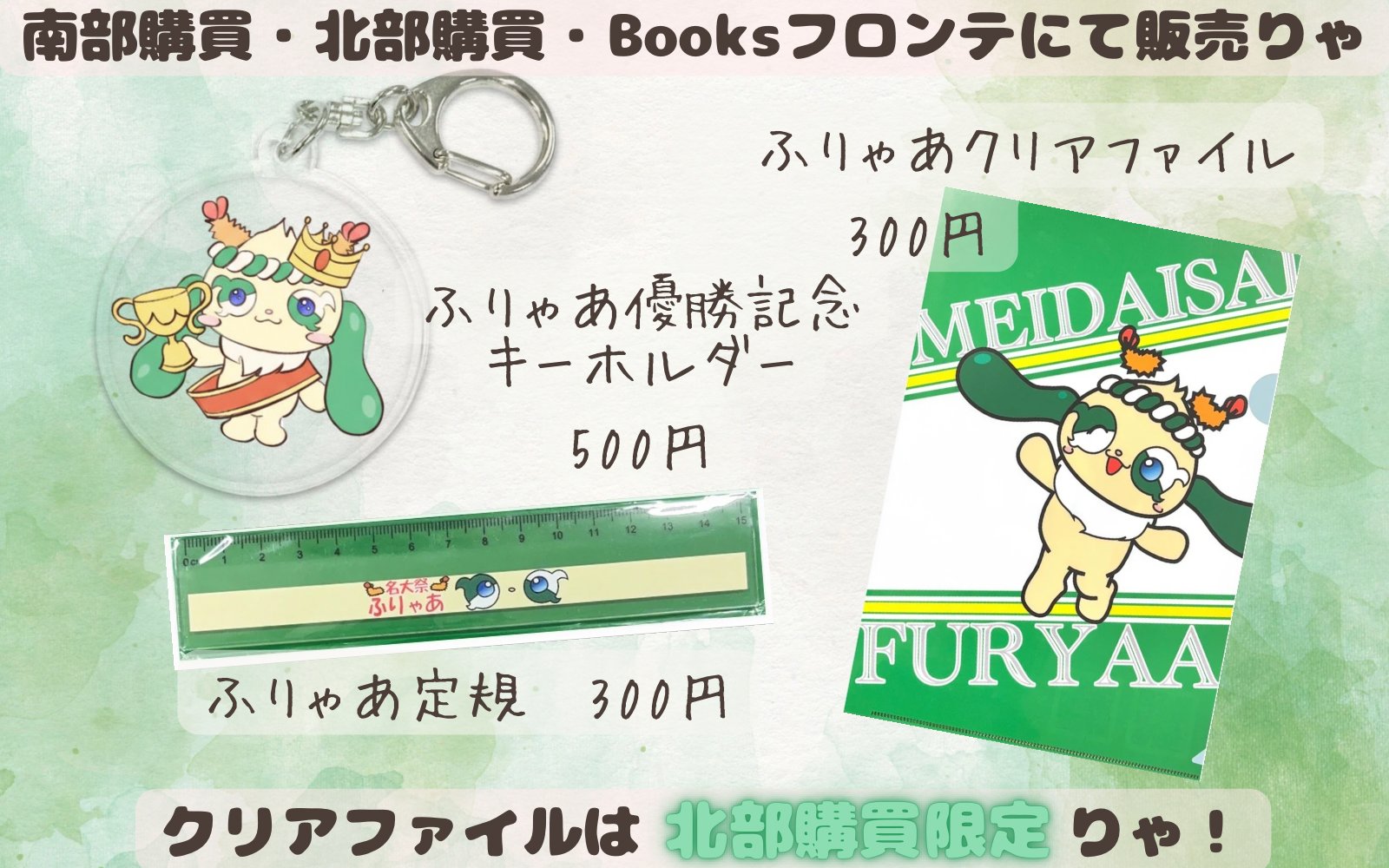 名古屋大学生協では、名大祭公式キャラクター「ふりゃあ」のオリジナルグッズ販売中!です。