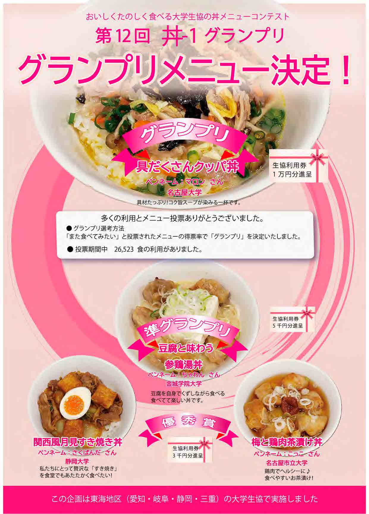 大学生協東海地区では、2025年8月に第12回「丼-1」グランプリ選考会で決定したメニュー(4種)を、