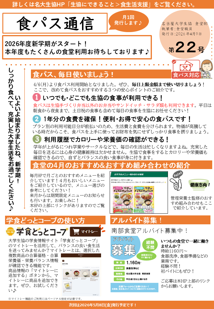 名古屋大学生協より「食パス通信vol.22発行しました!」のでお知らせいたします。