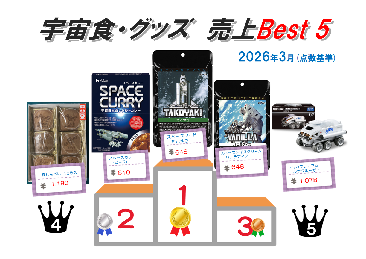 宇宙科学研究所生協より宇宙食・グッズ売上BEST5 2026年3月編のお知らせです。