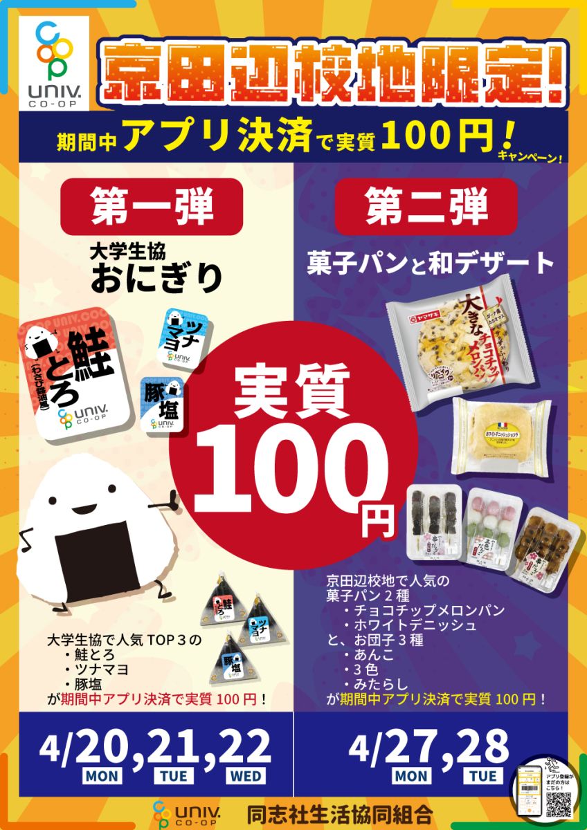 同志社生協において【同志社大学京田辺校地限定】実質100円企画を開催します。